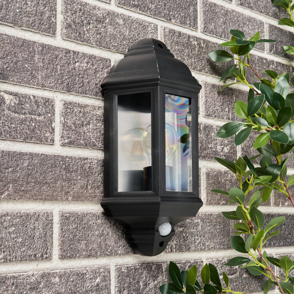 Athena Outdoor Half Wall Lantern with PIR Sensor, Black