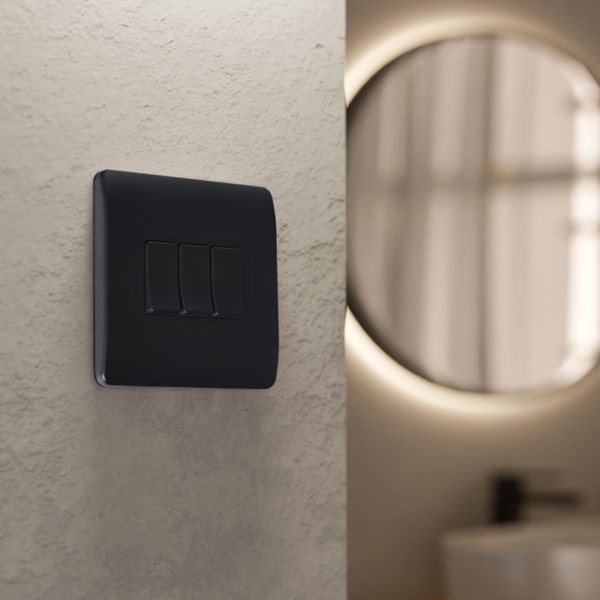 3 Gang Battery powered Switch On/Off/Dim Matt Black IP20 CR2032 battery supplied