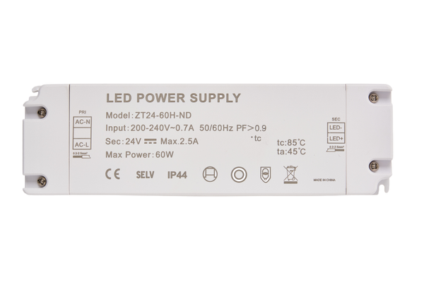 60W 24V 2.5A Power Supply, 200-240Vac input, IP44