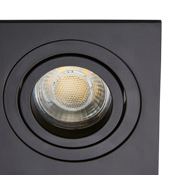 The Pasto Single Square Recessed Downlight offers Scandi-style lighting ideal for low ceilings. Featuring a matt black finish and a modern square design, this adjustable spotlight allows you to direct the light wherever you need, adding both functionality and a contemporary touch to your space.