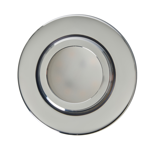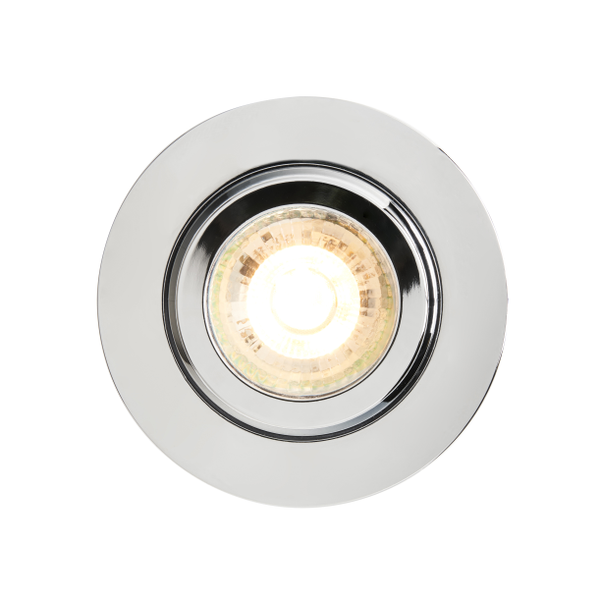 Cultivate a contemporary aesthetic in your home with the Eros Fire Rated LED IP65 tiltable downlight. This light, rated IP65, is adjustable, allowing it to be tilted to direct light in any desired direction. Additionally, it features a chrome finish for a polished look. Requires one GU10 bulb sold seperately.