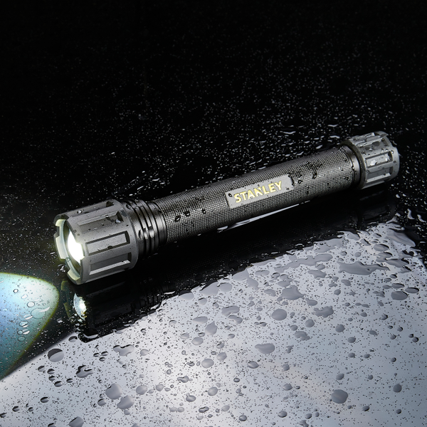 This heavy duty LED aluminium torch from Stanley is designed with a rubber protected switch for extreme durability. The water resistant function makes it ideal for even extreme weather conditions