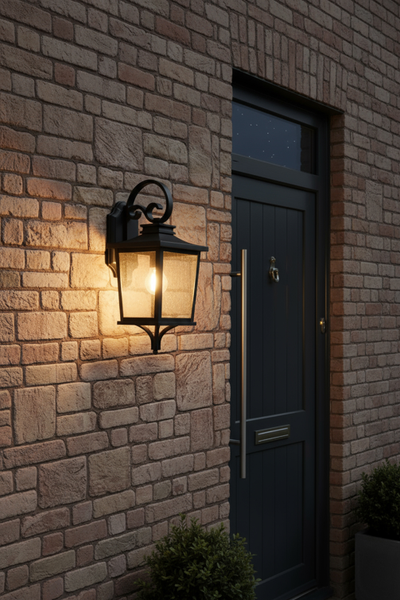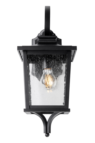 Enhance your home’s curb appeal with the Brexton large outdoor traditional lantern. Featuring a durable matte black finish and a sophisticated carriage-house silhouette, this fixture blends traditional charm with modern durability. The clear glass panels elegantly diffuse light from a single Edison-style bulb, creating a warm and welcoming glow for entryways, patios, or garages. A decorative scroll arm and tapered base add a refined architectural touch to any exterior setting.